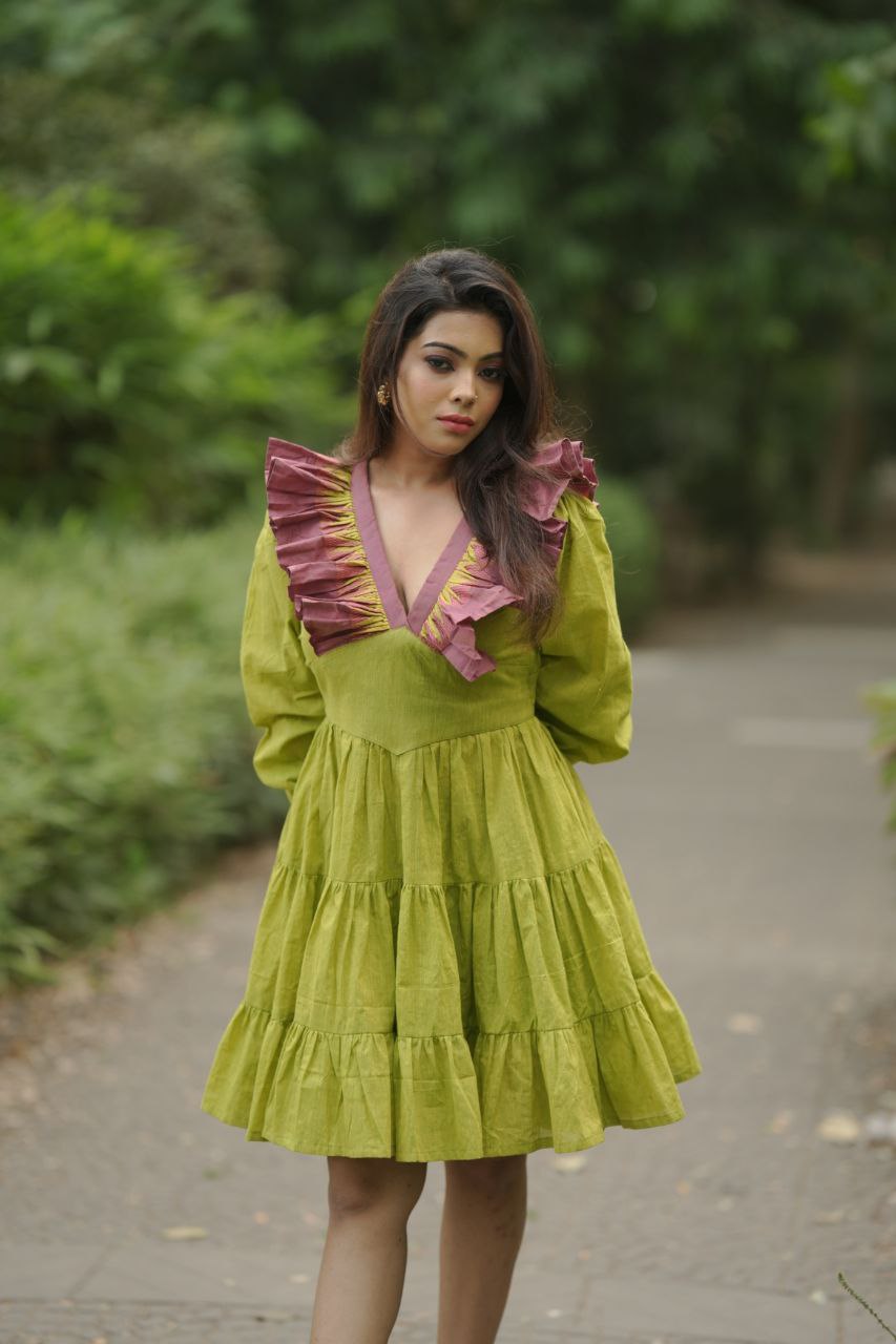 Lantern Sleeves with shirt cuff; Deep Plunging Neck,